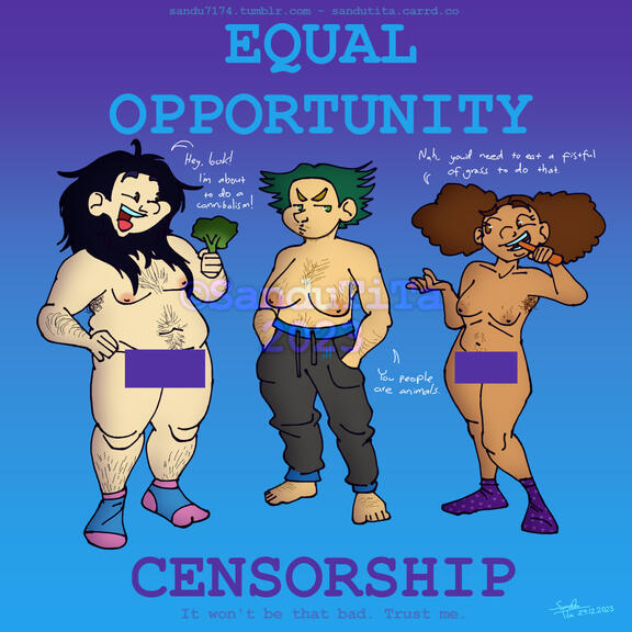 And if anyone has made or seen any content relating to this topic and they'd like to share it with me, for the love of God, send it my way. I'd love to see it! You can reach me at Discord @sandutita.It saddens me to see how the Free The Nipple -campaign has been ongoing for over 10 years now, and very little has changed since it started. I wish that something concrete and powerful happened, something like Instagram finally allowing female nipples on their site, or Markiplier launching a petition about this or something. Anything is good! As long as it's progress; a step forward. Maybe someday we'll reach equality. But it won't happen overnight.Here's a list of various text posts I've made about this subject: